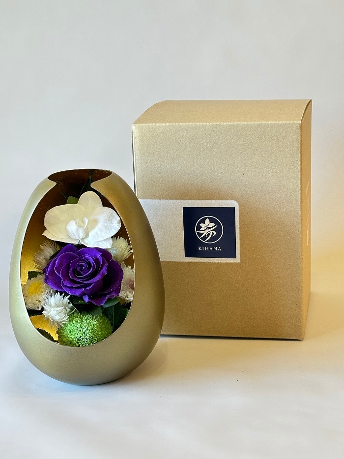 プリザーブドフラワーお供え花 ゴールドの器 胡蝶蘭(高さ18cm)