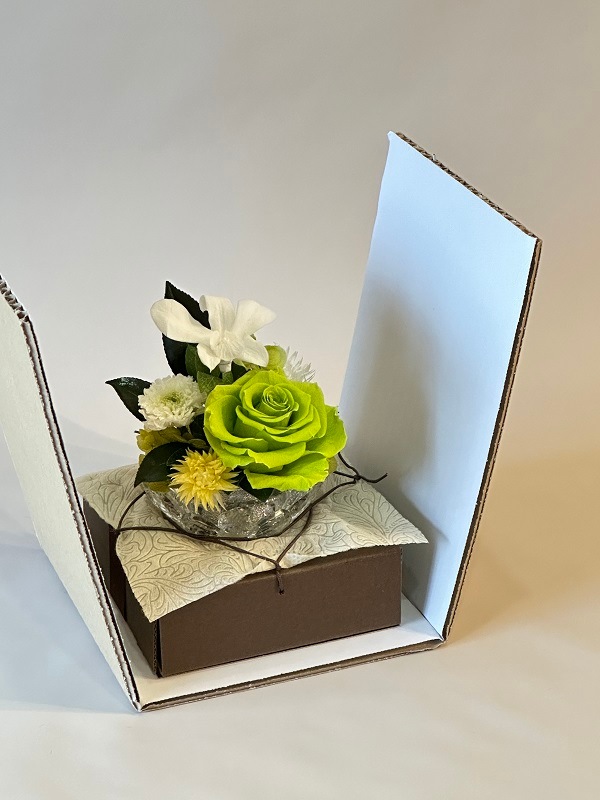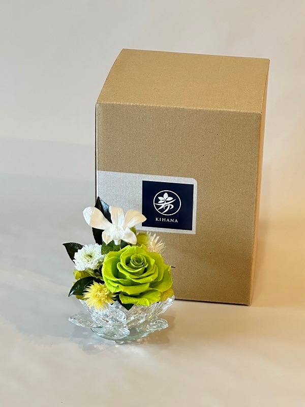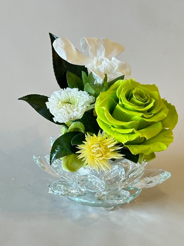 プリザーブドフラワーお供え花 プチロータス グリーンバラ(高さ13cm)