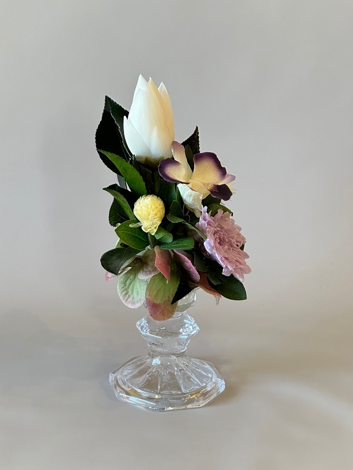 プリザーブドフラワー モダン仏花 ガラススタンド 蓮(全高20cm)