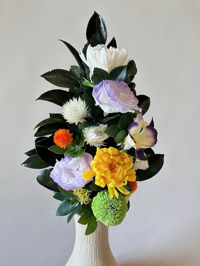 プリザーブドフラワー仏花Lサイズ 高さ38cm(花丈27cm+器11cm) 器付タイプ