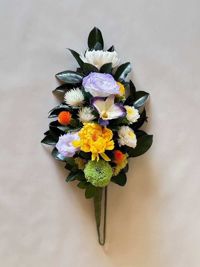 - 高さ38cm(器の下から仏花の上の葉先まで)