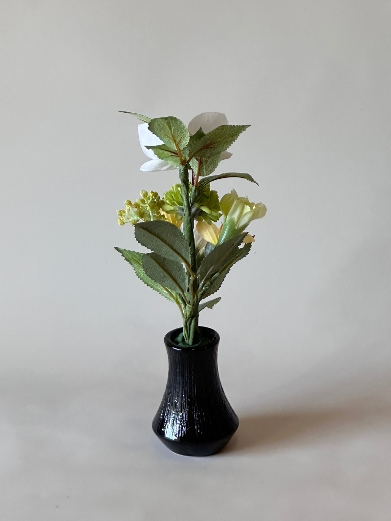 - 陶器製 ブラック 高さ7cm。希花亭オリジナルの花器になります。