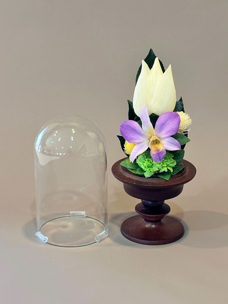 プリザーブドフラワー仏花 ガラスドーム小 蓮(全高19cm)