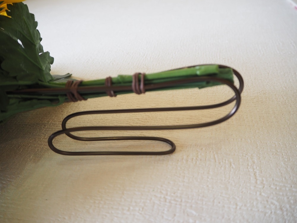 茎(ワイヤー)の部分にはアルミワイヤー(長さ約40cm)がついています。 器の深さに合わせ折り曲げ、しっかりと器に固定して下さい。風などで倒れにくくなります。