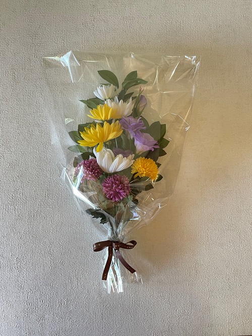 アーティフィシャルフラワー(造花)の輪菊、百合、小菊を使用しております。
