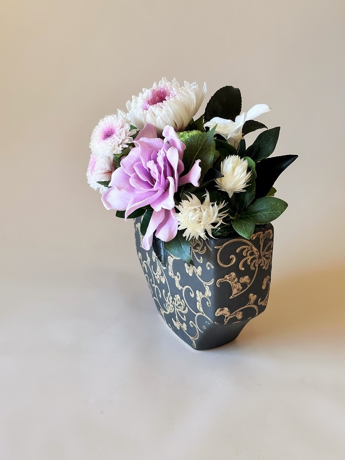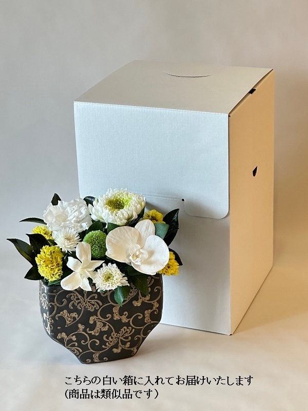 プリザーブドフラワーお供え花 唐草器小 クチナシのアレンジメント(高さ20cm)