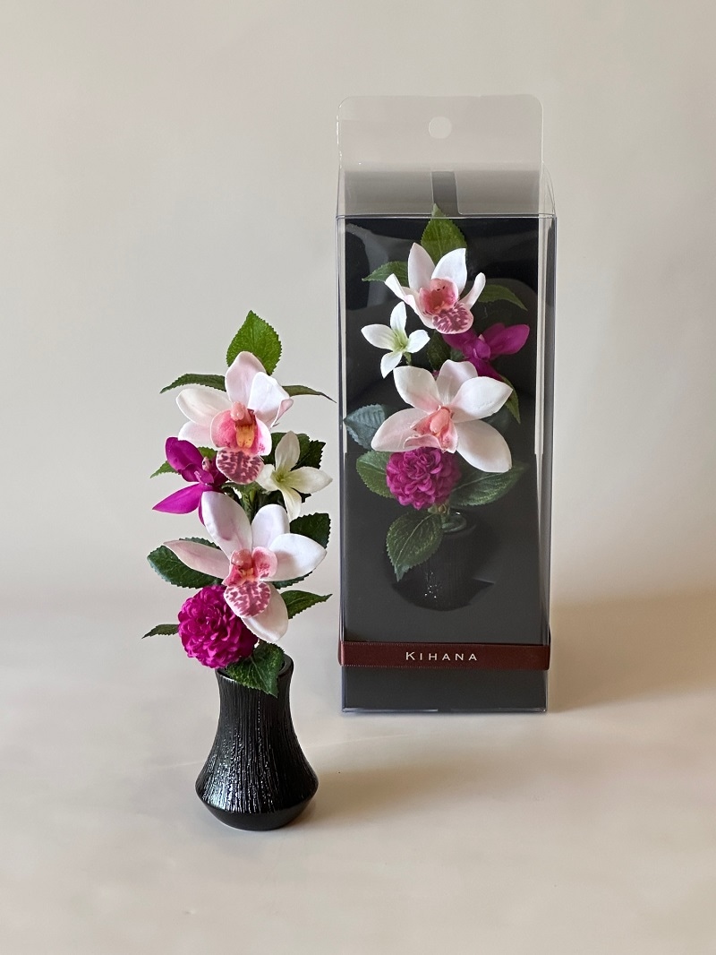 生花そっくりの蘭の鉢物や上質なアーティフィシャルフラワー(造花)とモダンで個性的な器を融合させた作品は、お祝いやインテリアのお花としてもお飾りいただけます。